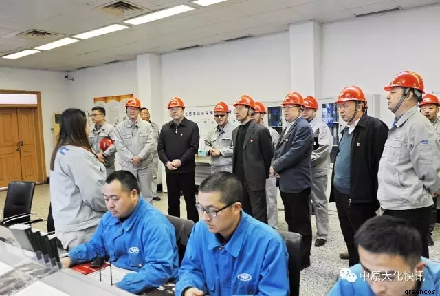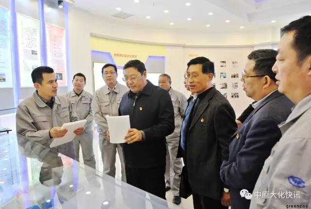 在天然氣化工裝置區(qū),馬富國在聽取了有關(guān)生產(chǎn)裝置的運行情況介紹后,又向化肥事業(yè)部的管理人員詳細詢問了他們在經(jīng)營管理、員工培訓(xùn)、新產(chǎn)品開發(fā)等方面的好經(jīng)驗、好做法,并勉勵大家不僅要優(yōu)化裝置運行,搞好安全生產(chǎn),而且要不斷進行知識更新,開闊眼界,努力開發(fā)出具有高附加值的產(chǎn)品,走高端發(fā)展的道路。在煤化工裝置區(qū),馬富國親切看望了生產(chǎn)一線員工,并對甲醇裝置長周期運行所取得的成績給予了充分肯定,同時要求甲醇事業(yè)部要安全、環(huán)保一起抓,精心操作,穩(wěn)定運行。在中原大化公司展廳,馬富國一行興致勃勃地參觀了公司發(fā)展歷程展覽,并指示中原大化要扎實做好綠宇公司新三板上市的各項工作,加快推進上市步伐。